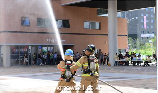 이날 훈련은 민방공 대피훈련과 연계해 다중이용시설에 적 특작부대의 테러로 인한 인명피해와 화재상황을 가상으로 연출하고 주민대피와 사상자 구호, 화재진압 등의 시연으로 진행됐다.