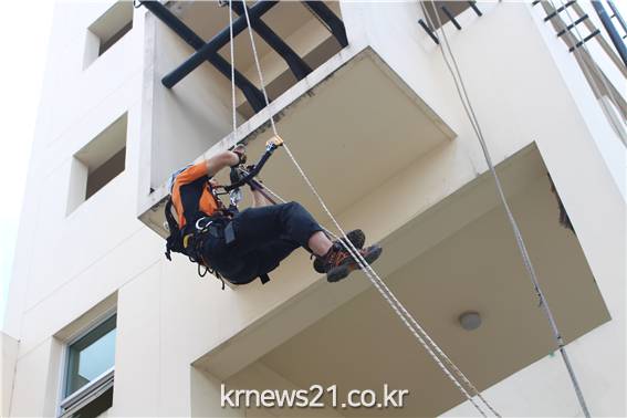 ▲ 구조활동 중 추락방지 숙달훈련 실시(사진)전주덕진소방서 구조대장(이남영)은 산악지형 등 인명구조 활동시 대원들의 안전을 책임져주는 장비로써 지속적인 조작숙달 훈련으로, 현장활동 구조대원들의 대응능력을 향상시켜 , 안전하고 신속한 인명구조 활동을 펼쳐 나가겠다고 말했다.