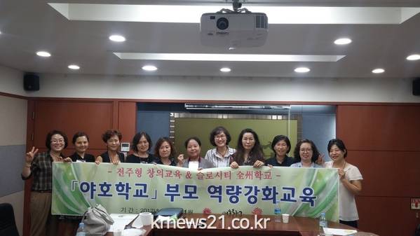전주시가 8월 한 달간 시청 영상회의실에서 이루어진 전주형 창의교육 ‘야호학교 부모역량강화교육 1기’를 성공적으로 마무리했다. 8일부터 28일까지 매주 월요일 저녁에 진행된 부모교육은 야호학교에 참여 중인 부모 10명을 대상으로, 정혜선 전주시청소년상담복지센터장의 부모-자녀교육과 오정화 전주시의원의 독서토의, 장희정 신라대 국제관광학부 교수의 슬로시티 개론 강의 등으로 이루어져 운영되었다. 가족력을 들여다볼 수 있는 가계도 그리기, 자녀의 감정 이해하기, 부모-자녀 대화법, <야누슈 코르착의 아이들> 독서토의, 슬로시티 개념 이해, 자녀와의 갈등 해결, 자녀 북돋우기 등 집중도 있는 교육과정으로 부모들의 만족도를 높이는 데 기여했다. 이번 부모교육은 부모 스스로 개인 기질을 돌아보고, 자녀 양육 방식을 객관적으로 점검해 볼 수 있는 시간을 가진 것에 의의가 있다. 특히, 장희정 신라대 교수는 국제슬로시티 재인증에 성공한 전주시의 시정 방향과 야호학교의 운영 방침이 ‘모든 시민이 스스로 행복감을 찾을 수 있는 (교육)도시 만들기’로 통(通)할 수 있음을 강조했다.