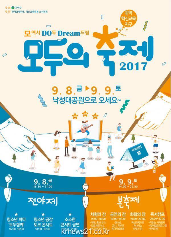관악구는 다음달 8일부터 9일까지 낙성대공원 일대에서 관악혁신교육지구 ‘모여서 DO DREAM 2017. 모두의 축제’를 개최한다.