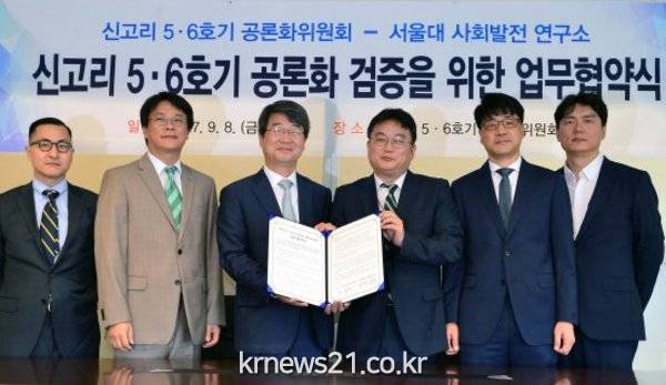 공론화위원회는 8일 오전 서울 광화문빌딩 위원회 사무소에서 서울대 사회발전연구소와 ‘신고리5·6호기 공론화 검증을 위한 업무협약’을 체결했다.