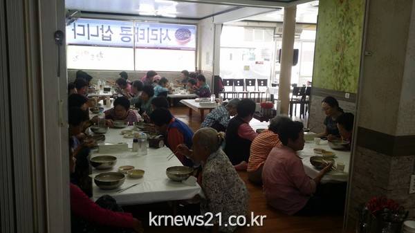 콩국수를 대접했다. 항상 밝은 미소와 친절의 대명사인 진미식당 김성열 대표 부부는 한마음 한뜻으로 지역의 어르신에게 관심을 가지고