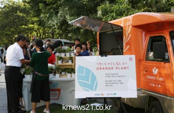 환경재단(이사장 최열)이 ING생명(대표이사 정문국)과 함께 미세먼지 해결을 위한 환경 사회공헌 활동으로 공기정화 식물을 무료로 나눠주는 ‘오렌지플랜트’ 캠페인을 시작했다.