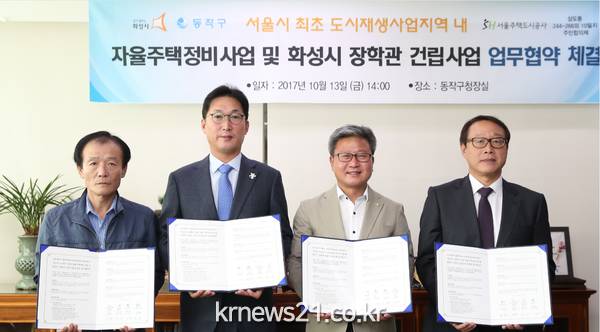 화성시가 지난 13일 서울시 동작구청에서 동작구, SH 서울주택도시공사, 주민합의체와 서울 제1 장학관 이전건립을 위한 업무협약을 체결했다."고 밝혔다.