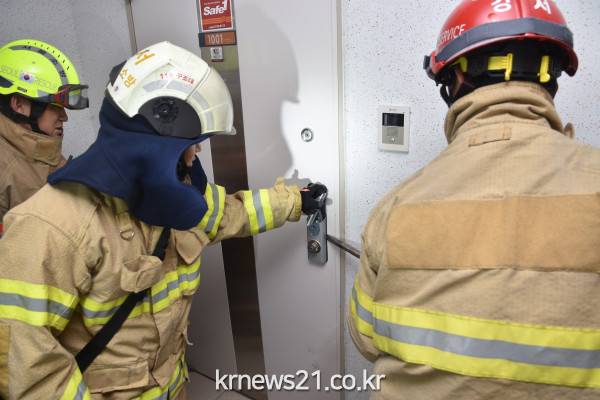 아파트 관계자가 연기를 보고 신속히119에 신고를 하였으며, 선착대 도착후 가스차단을 실시하고 거주자가 없어 출입문을 강제로 개방하였다.