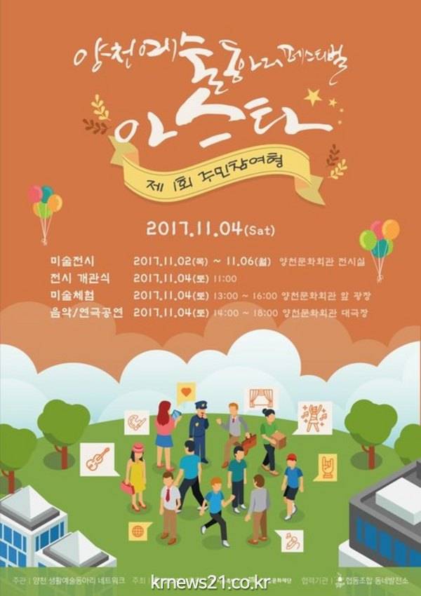 서울 양천구는 내달 4일 오후 2시 양천문화회관에서 주민참여형 축제인 제1회 양천 예술동아리 페스티벌 '아~스타(아~우리가 스타)'를 개최한다고 31일 밝혔다.