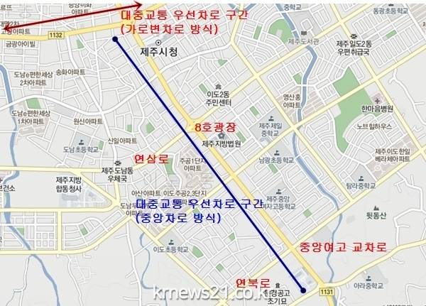 앞서 제주도는 지난 8월23일부터 무수천∼국립제주박물관 11.8㎞ 구간에 대해 가로변 버스우선차로제를 시범 운영하고 있다. 가로변 버스우선차로제에서는 도로 양쪽 끝 차선을 버스와 택시만 이용할 수 있다. 출근 시간인 오전 7∼9시, 퇴근 시간인 오후 4시30분∼7시30분에만 운영된다.