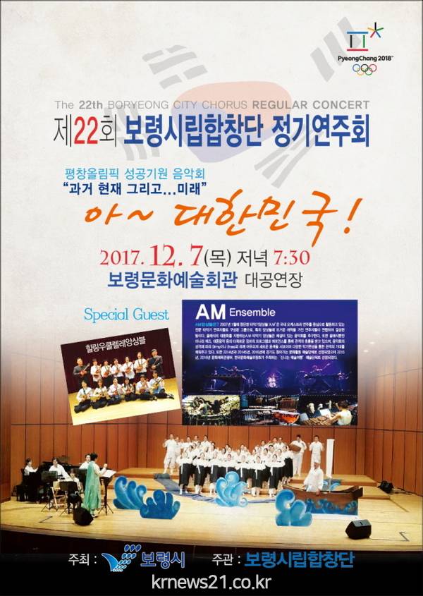 보령시는 오는 7일 저녁 7시 30분, 보령문화예술회관 대공연장에서 평창올림픽의 성공기원을 위한 정기연주회를 개최한다.