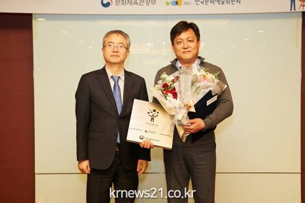 ▲ 문화체육관광부 장관상 수상 한국중부발전 남석기 노무복지부장(우측) 시상장면