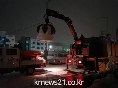 또한 읍‧면‧동에서도 이면도로와 마을과 마을 간 도로에 대해 제설과 염화칼슘 살포 작업을 실시중이다.