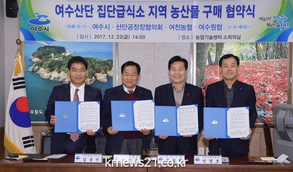 여수시에 따르면 지난 22일 농업기술센터 소회의실에서 ‘여수산단 집단급식소 지역 농산물 구매 협약식’이 열렸다.