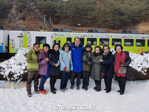 약 1000여명이 기차를 타고 단양팔경 눈꽃 축제 겸 길주산악회의 친목을 다짐하는 단합대회를 떠났다.