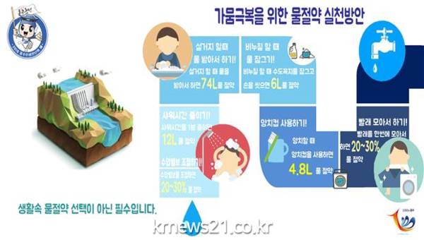 홍성군 수도사업소는 전년에 이어 금년에도 가뭄으로 인한 생활용수 부족 사태가 발생할 것을 우려해 ‘생활 속 물 절약 실천법’을 홍보하고 있다.