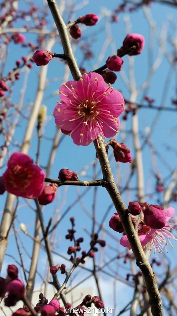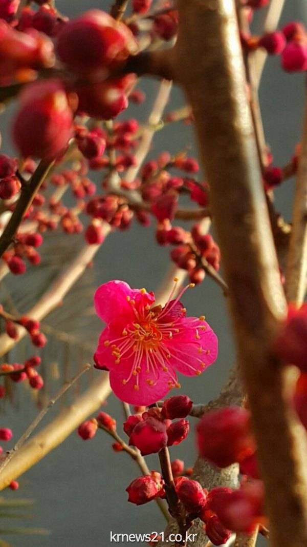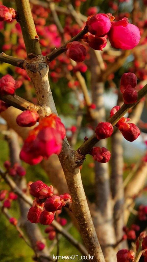 한파로 전국이 추운 겨울이지만 제주도에서는 봄의 전령인 홍매화가 개화하엿다.
