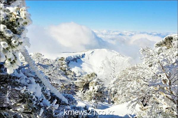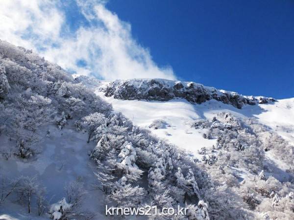 하얀 눈이 쌓인 산중에 펼쳐진 은빛 물결과 함께 아름다운 눈꽃 감상이 매력적인 한라산에는 많은 등산객들이 찾고 있다.