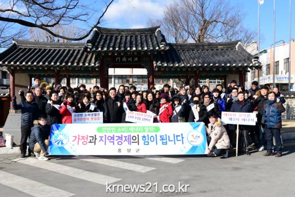 홍성군은 지난 6일 관내 소비자단체(소비자교육중앙회, 여성소비자연합회) 및 전통시장 상인회, 공무원 등 100여명이 참여한 가운데 2018년 설 대비 물가안정 및 에너지 절약 합동캠페인을 실시하였다.