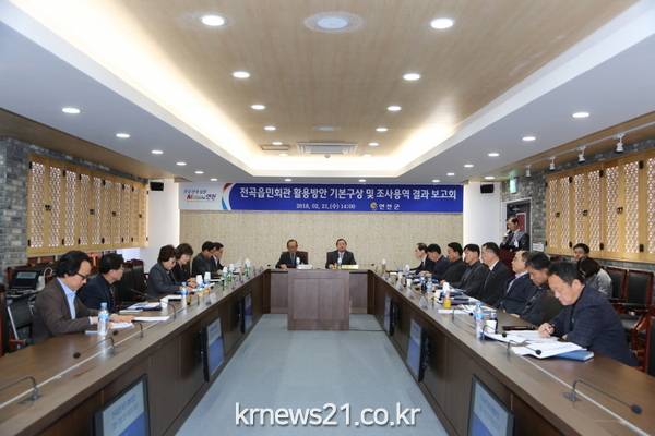 연천군은 2월 21일 군청상황실에서 김규선 연천군수, 이종만 연천군의회의장 정의돌 부군수를 비롯한 연천군의회의원, 기획감사실장, 전략사업실장 등 20여명이 참석한 가운데 전곡읍민회관 기본구상 및 조사용역 보고회를 가졌다.