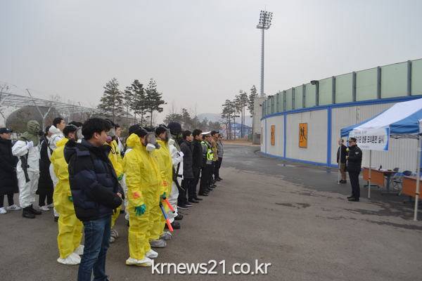 경찰(기동타격대)과 소방,보건소 등 총 45명이 참가 하였고 다중이 이용하는 공원에서