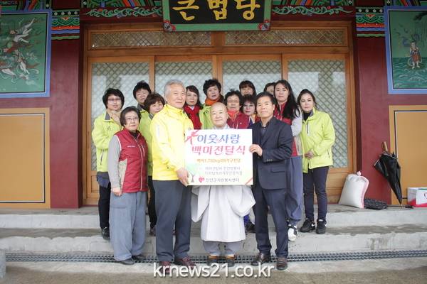 진안군자원봉사센터(센터장 김용진)는 지난 19일 마이산탑사(주지 진성스님)와 쌍봉사(주지 보경스님), 디지털프라자 무진장지점(대표 정재철)이 후원한 백미 20㎏ 94포대를 어려운 이웃에게 전달해 지역사회에 훈훈함을 더했다.