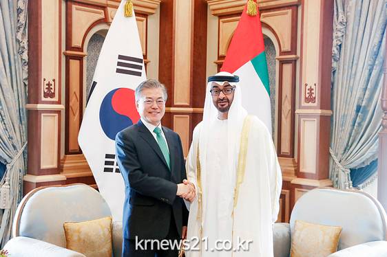 문 대통령은 수출·교역과 관련해서는 “우리나라가 수출을 하는 것만이 중요한 것이 아니고 UAE와 공동개발하고 협력해서 다른 세계 무역시장으로 진출할 수 있는 길을 확보해 나가자” 고 말했다.