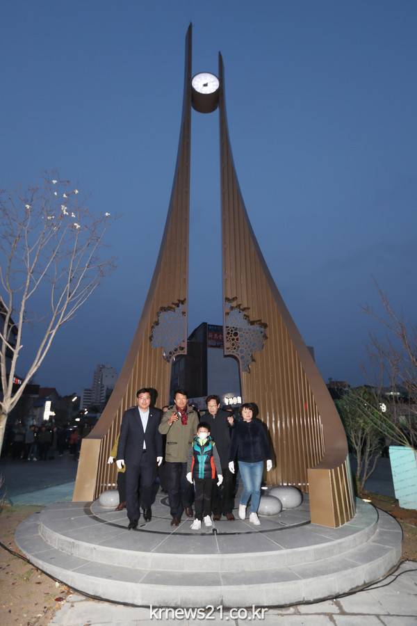 (뉴스21/정혹태 보도국장) 부안군이 부안읍 구도심 활성화 광장 정비사업의 일환으로 조성한 카이로스(kairos·기회 또는 특별한 시간을 의미하는 그리스어) 광장의 ‘시간을 잇다’ 시계탑 점등식이 6일 오후 7시 개최됐다.