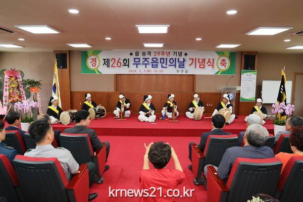 (전북/뉴스21)송태규기자= 읍 승격 39주년 기념 제26회 무주읍민의 날 기념행사가 지난 1일 무주군 무주읍 주민자치센터 2층 대회의실에서 개최됐다.