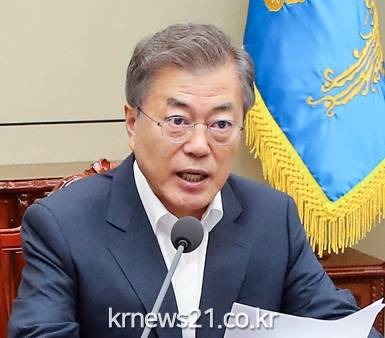 ▲ 문재인 대통령이 30일 오후 청와대 여민관에서 열린 수석ㆍ보좌관회의에서 발언하고 있다.문정인 대통령 외교·안보특보가 지난 4월 30일 미국 외교전문잡지 <포린 어페어스(Foreign Affairs)>에 기고한 글에서 "한반도 평화협정이 체결되면 주한미군의 지속적인 주둔을 정당화하기 어려울 것이다"라고 말한 것에 대해 문재인 대통령이 직접 반박하고 나섰다.