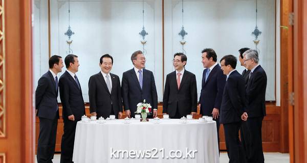 문재인 대통령은 오늘 낮 본관 인왕실에서 정세균 국회의장, 이진성 헌법재판소장, 이낙연 국무총리, 권순일 중앙선거관리위원장 등 헌법기관장을 초청해 오찬을 함께 했다. 국외출장중인 김명수 대법원장은 불참했다.