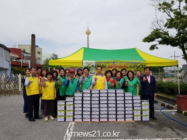 이날 담은 열무김치 80통은 관내 11개 경로당과 홀로 사는 어르신 및 저소득 계층 69세 대