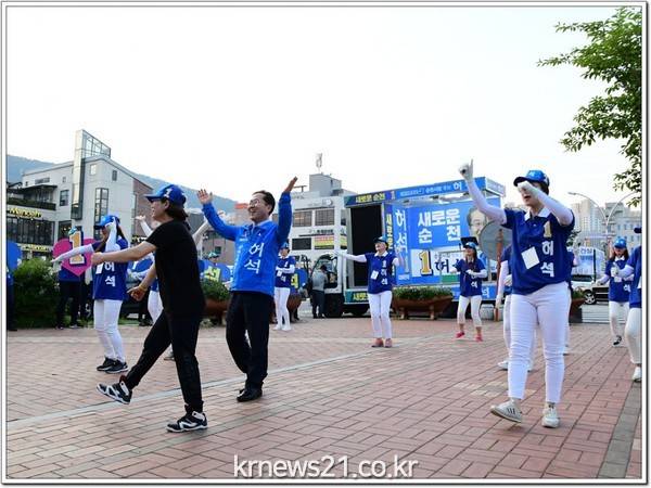 ''허석 '' 더불어민주당 순천시장 후보의 선거율동팀들이 가는 곳마다 눈길을 사로잡으며 선거분위기를 주도하고 있다.