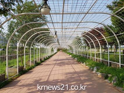 풍무동 570-26번지 일원의 계양천변 2.2km 길이에 조성된 풍무동 도시숲 그늘시렁에는 표주박, 수세미, 맷돌호박 등 1년생 덩굴식물 모종 10종을 식재하여 여름철을 시원하게 해주는 이색휴식공간을 제공하고 아이들의 친환경학습의 장을 마련했다.