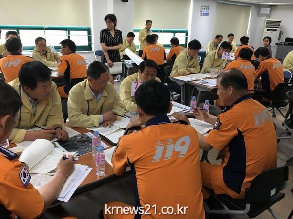 이어 복잡도와 혼잡도가 높은 전통시장 화재 발생으로 인명과 재산 피해가 발생된 상황을 가정해 지휘관으로서 의사를 결정해 실행하는 토론훈련을 실시했다.