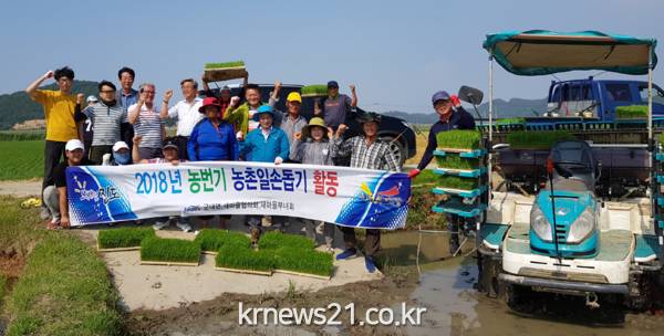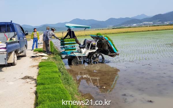 일손 돕기에는 십시일반으로 주민들이 참여해 모판과 이양기, 트렉터 및 인력 지원을 통해 1800평의 논에 모내기를 마칠 수 있도록 도움을 주었다.