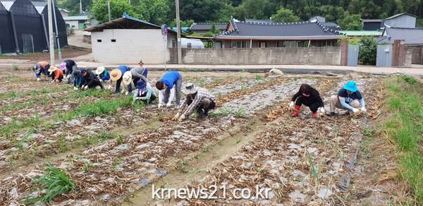 지난 11일 기획감사실 공무원 20여 명은 용산면 인암마을의 한 귀농인 농가를 찾아 양파를 수확하며 구슬땀을 흘렸다.