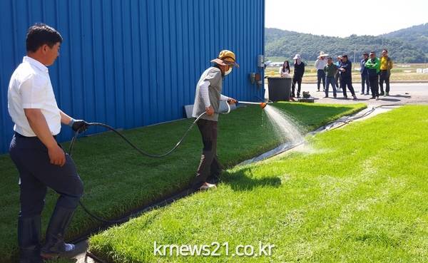 장흥군은 지난 11일 관산읍 신동마을에서 ‘벼 병해충 생력방제 프로그램’ 시연회를 개최했다고 밝혔다.