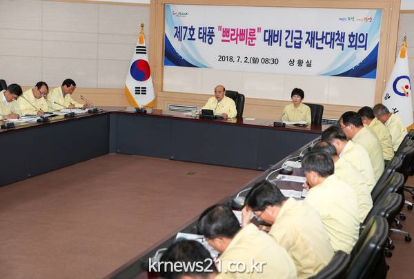이어, 상황실에서 열린 제7호 태풍 ‘쁘라삐룬’ 북상 대비 긴급 재난대책 회의에 참석해
