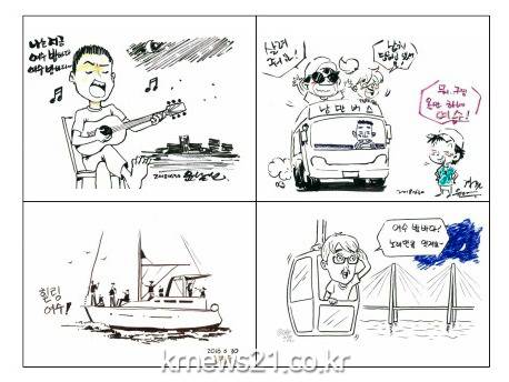 인기 웹툰 작가들이 밤바다로 유명한 여수 곳곳을 돌아본 후 감상을 스케치로 남겼다.