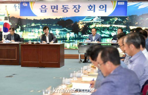 이날 회의에서 국․소장들은 청년일자리사업 참여자 모집, 중소기업경영안정자금 융자 신청, 폭염장기화와 여름 휴가철 안전위험 요인에 대한 예찰활동 등 시의 주요 현안을 설명하고 읍면동의 협조를 요청했다.