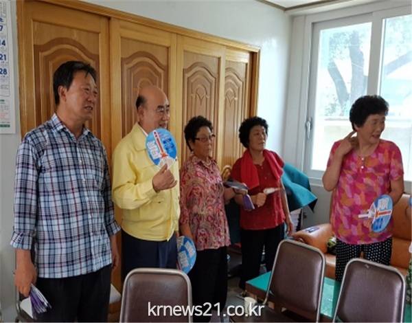 정현복 시장은 지난 7월 25일 진상면 섬거마을회관과 신시경로당에 있는 무더위 쉼터와 경로당을 방문했다.