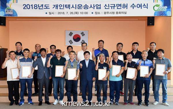 발급은 총 70명이 접수해 여객자동차운수사업법 및 광주시 개인택시 운송사업면허 사무처리 규정의 우선순위에 따라 심사가 이뤄졌으며 최종 18명이 선발됐다.