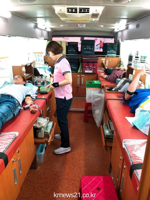 (헌혈 버스)에서 여름철 ‘사랑의 헌혈’ 행사를 실시했다.