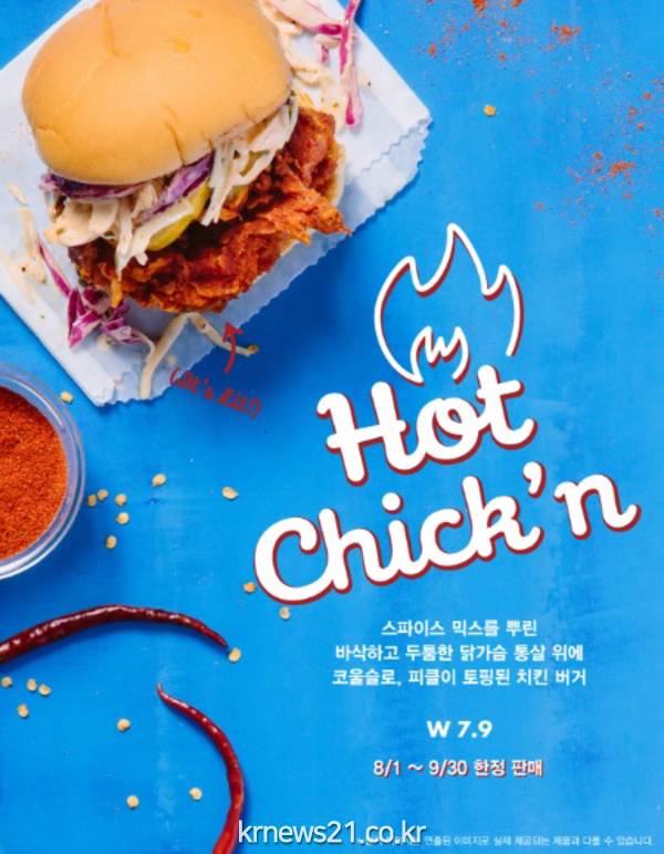 이번에 출시한 ‘핫 치킨’은 ‘치킨쉑’에 매콤한 특제 시즈닝을 추가하고 ‘핫소스 코울슬로’가 함께 제공되는 등 스파이시한 맛을 강화했다.