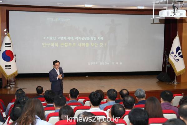 무주군청 공무원 2백여 명이 참석해 인구감소와 지방소멸, 인구고령화 가속화, 인구변화에 따른 사회 · 경제적 파급효과, 저출산 극복을 위한 국가정책과 해외사례 등을 함께 공유했다. 임재일 강사는 “저출산 문제를 해결하는 것은 정책과 제도만으로는 이제 한계가 있다”라며 “가치관의 변화와 인식 개선이 필요한 만큼 중앙정부 정책을 보완하고 행정을 집행하는 지자체의 역할이 매우 중요하다”라고 말했다. 이와 관련해 농촌지역은 인구유출을 막고 인구유입을 유도할 수 있도록 정주여건을 개선해야 하며 아빠육아를 독려하고 저출산 극복 캠페인을 벌이는 등의 국민인식개선사업 추진도 시급하다고 강조했다.