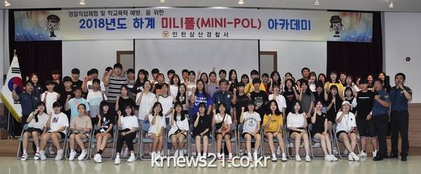 인천삼산경찰서 2018년도 하계 미니폴 아카데미 실시 기념사진을 찍었다.