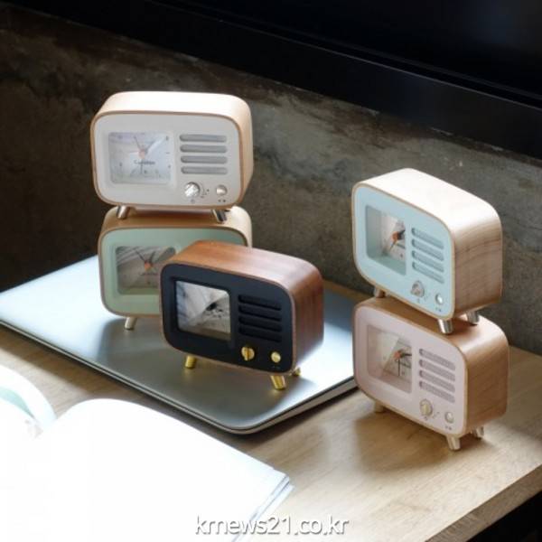 특히 시트지를 붙인 일반 원목 스피커 제품의 MDF 인크로저가 아닌 실제 원목을 CNC가공으로 제작했기 때문에 나무 그대로의 재질로 자연스러운 멋을 연출한다. 아날로그 탁상 시계의 스타일리쉬한 레트로 컨셉으로 조용한 저소음 시계 무브먼트를 사용해 책상 또는 침실의 좁은 테이블 위에 놓고 시간과 알람을 활용할 수 있다.