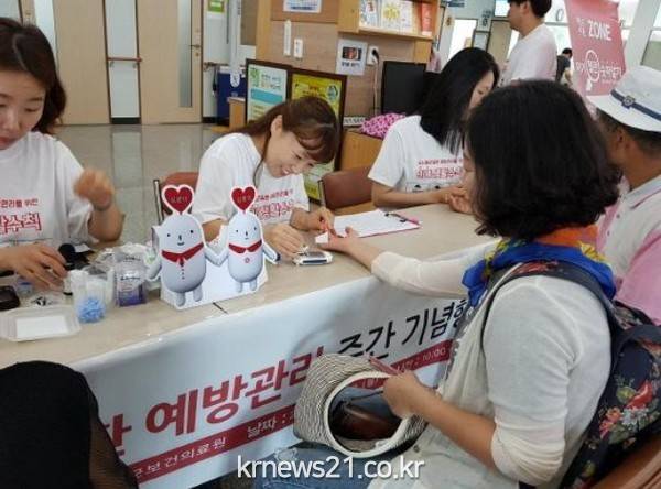이에 동참하는 곡성군은 지난 3일 ‘자기혈관 숫자알기’를 슬로건으로 곡성군보건의료원과 기차마을 전통시장에서 혈압, 혈당, 콜레스테롤, CO측정, 건강상담 등 레드서클존 운영을 운영하고 캠페인을 실시했다.