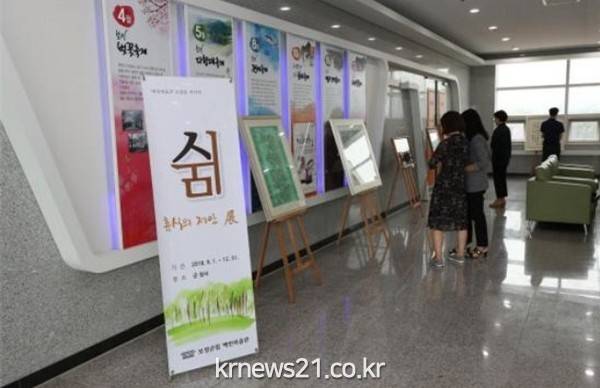 전시회의 주제는 ‘쉼 ? 휴식의 제안 展’ 으로 지난여름 폭염과 폭우에 지친 군민과 직원들을 위해 준비됐다. 한국화, 회화, 사진 등 100여 점의 작품이 1~3층 복도 및 4층 대회의실 로비, 군의회에 전시되어 우리 군의 문화 정서를 높여주는 전시가 될 것으로 기대된다.