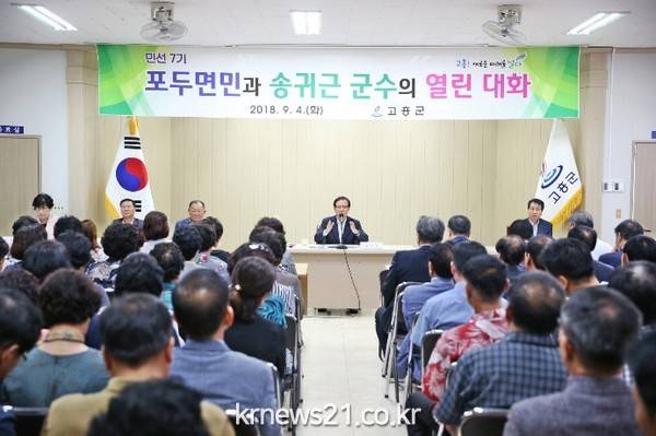 군민과의 열린 대화에 있어서도, 질문내용과 질문자를 사전 지정하던 종전 방식에서 과감히 탈피하여 참석 군민 누구나 애로 및 고충을 제약 없이 건의하도록 했으며, 답변도 송 군수가 직접 간단명료하고 명쾌하게 설명함으로써 참석자들로부터 박수 갈채를 받았다.