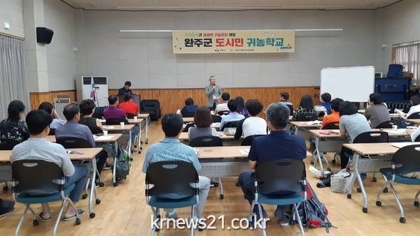 ▲ 도시민 귀농학교 2기(전북/뉴스21)송태규기자= 완주군이 도시민을 대상으로 귀농체험을 진행해 호응을 얻었다. 10일 완주군은 지난 7일부터 9일까지 2박3일간 수도권을 비롯한 도시민 36명을 대상으로 제3차 귀농 현장 체험 교육을 완주군 일원에서 진행했다고 밝혔다. 이번 교육에서는 ‘대한민국 로컬푸드 1번지 완주’라는 명성에 걸맞게 로컬푸드를 중심으로 형성된 친환경 농가들을 방문하고 마을 공동체, 거점농민 가공센터, 로컬푸드 직매장 등 완주군의 선도적인 농업농촌 정책을 견학했다. 이를 통해 안전한 먹거리와 농업이 존중받는 사회를 위해 고민하고 농토피아를 실현하기 위한 완주의 매력을 선보였다.