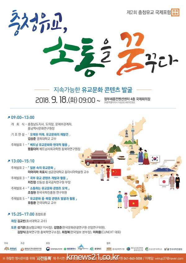 충청남도 관계자는 “향후 충청권 4개 광역시·도가 함께 충청유교문화권 상생협력을 강화하기 위해서 충청유교 국제포럼을 함께 운영하는 방안을 모색하고 있다”고 언급하였다. 또, 이번 포럼을 주관하는 충남역사문화연구원 이종수 원장은 “충청유교 국제포럼이 환황해 국가와 지역의 유교문화를 바탕으로 충청유교문화권을 효과적으로 국제무대에 알리고, 향후 국제협력 콘텐츠 발굴로 이어져 충청유교문화권 광역관광개발사업이 조기에 활성화 되기를 기대한다”고 밝혔다.